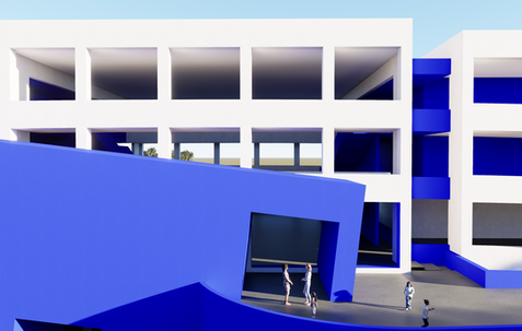 The school stands as a dialogue between light, form, and learning a sculpted landscape of discovery. Its bold geometry unfolds in layered planes and interlocking volumes, where courtyards breathe between built forms and light traces every passage with purpose. Architecture here becomes more than enclosure; it is an open framework for movement, encounter, and imagination.